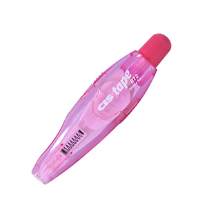 Corretivo em fita com 5 milímetros de largura e 5 metros de comprimento, não tóxica e sem cheiro, com ponta retrátil. Caixa com 6 blisters com 1 unidade.